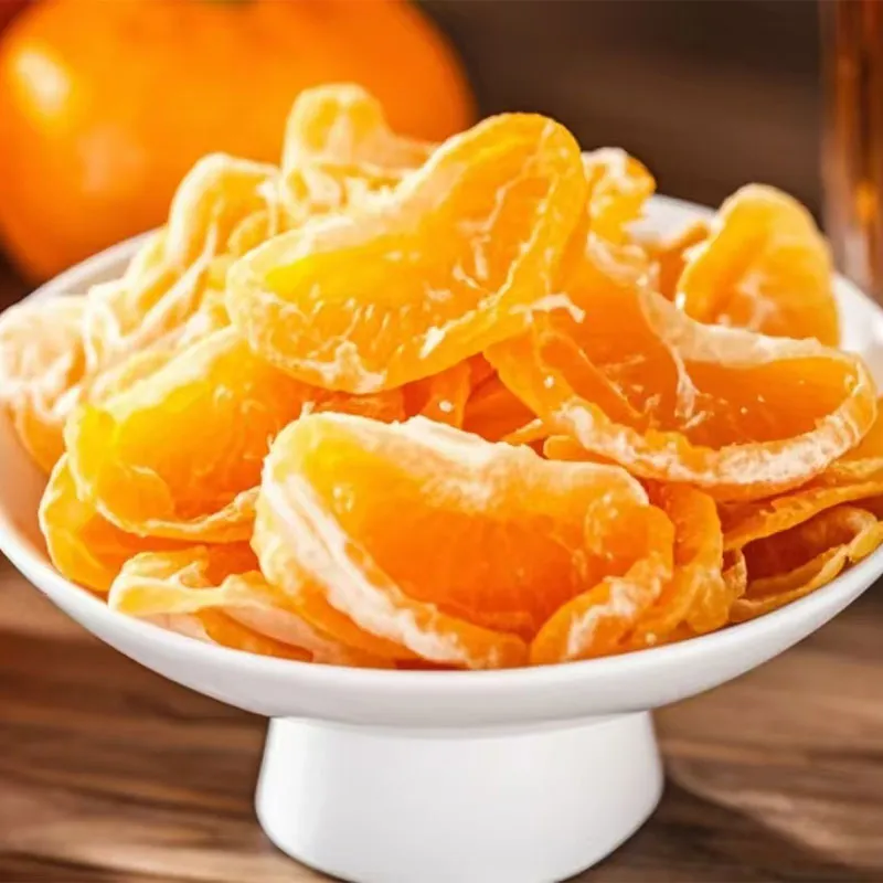 Сушеные мандарины изготавливаются из свежих мандаринов, которые затем сушатся и вялятся. Мандарины содержат множество питательных веществ, включая сахар, лимонную кислоту, витамин С, белок, каротин, витамин Р и другие витамины. Содержание витамина С в 6–20 раз выше, чем в яблоках. Мандарины не только питательны, но и обладают ярким цветом, сильным ароматом и сбалансированным кисло-сладким вкусом. Они вызывают вожделение при вдыхании запаха, вызывают слюнотечение при виде и невероятно вкусны при употреблении.