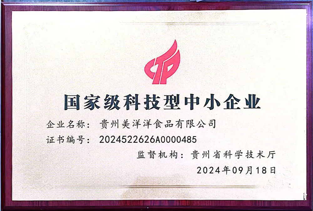 ООО Гуйчжоу Мэйянян Еда Введение — пищевая компания, специализирующаяся на исследовании, разработке, производстве и продаже специализированных закусочных продуктов. Основанная в феврале 2023 года с уставным капиталом в 6 миллионов юаней, компания расположена в зданиях 18 и 22 промышленного парка специализированных продуктов питания в уезде Цэнгун префектуры Цяньдуннань провинции Гуйчжоу, общая площадь составляет 4730 квадратных метров. Это недавно созданное современное предприятие, созданное на основе более чем 10-летнего опыта и технических знаний, в настоящее время компания насчитывает 17 руководящих сотрудников (включая 5 с высшим образованием, 9 с профессиональными техническими дипломами и 3 научных сотрудника), и ежегодно поощряет переселение 80 человек из близлежащих районов. Компания не только занимается производством и переработкой продуктов питания, объединяя выращивание сырья, переработку пищевых продуктов и централизованную реализацию сельскохозяйственной продукции округа, но и использует передовое отечественное и зарубежное производственное оборудование, испытательные приборы и стандартизированные модели управления производством, переработкой, инспекцией и продажами. Компания в основном занимается переработкой красного кислого супа «Кайли»; более 20 видов консервированных фруктов, таких как жёлтые персики, черника и клубника; овощные и грибные продукты производятся преимущественно методом сублимационной сушки (FD) для производства супа из белых грибов и семян лотоса, супа из шпината и яиц, супа из горных грибов и гибискуса, супа из морских водорослей и морепродуктов, а также других готовых к употреблению продуктов для пограничной службы острова.